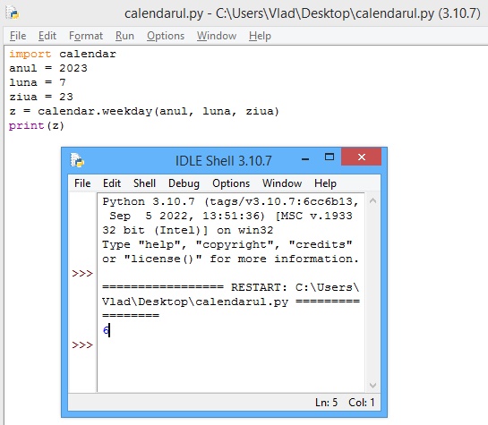 pentru a afla ziua săptămânii pentru data de 23 iulie 2023, putem folosi următorul cod: