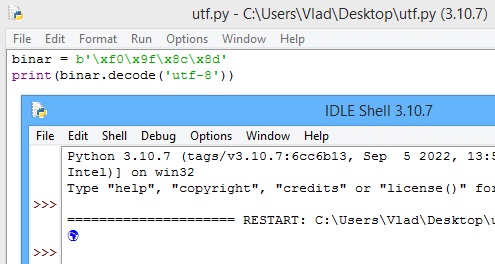 Să detaliem puțin. Expresia afișată reprezintă o secvență de octeți în formatul codificării UTF-8,