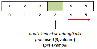 Astfel, putem introduce un element nou în poziția dorită din listă.