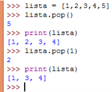 pop(indice_optional) șterge și întoarce ultimul element din listă ca rezultat,