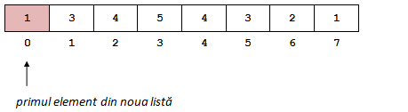 Apoi, din noua listă rămasă, am șters primul element de pe poziția