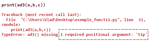 am fi obținut cu siguranță o eroare. Revenind la exemplul anterior, mai jos am uitat să introduc argumentul pentru tip:
