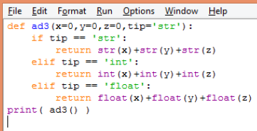 La primul apel, ultimul argument lipsește, însă programul funcționează, valoarea implicită fiind '