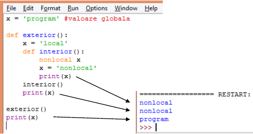 Deci, dacă modificăm variabila nelocală, are efect și asupra celei locale de la nivelul anterior.