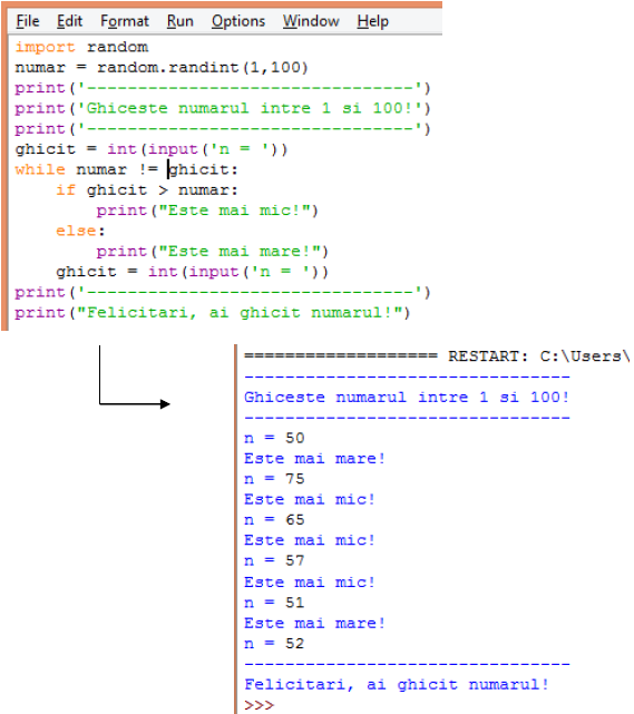 numărul introdus este egal sau nu cu cel ales la întâmplare.