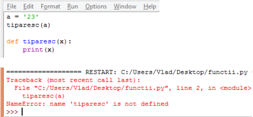 Funcțiile nu sunt executate de interpretorul Python, ci doar reținute ca definiții în memorie, deci ordinea acestora nu contează,